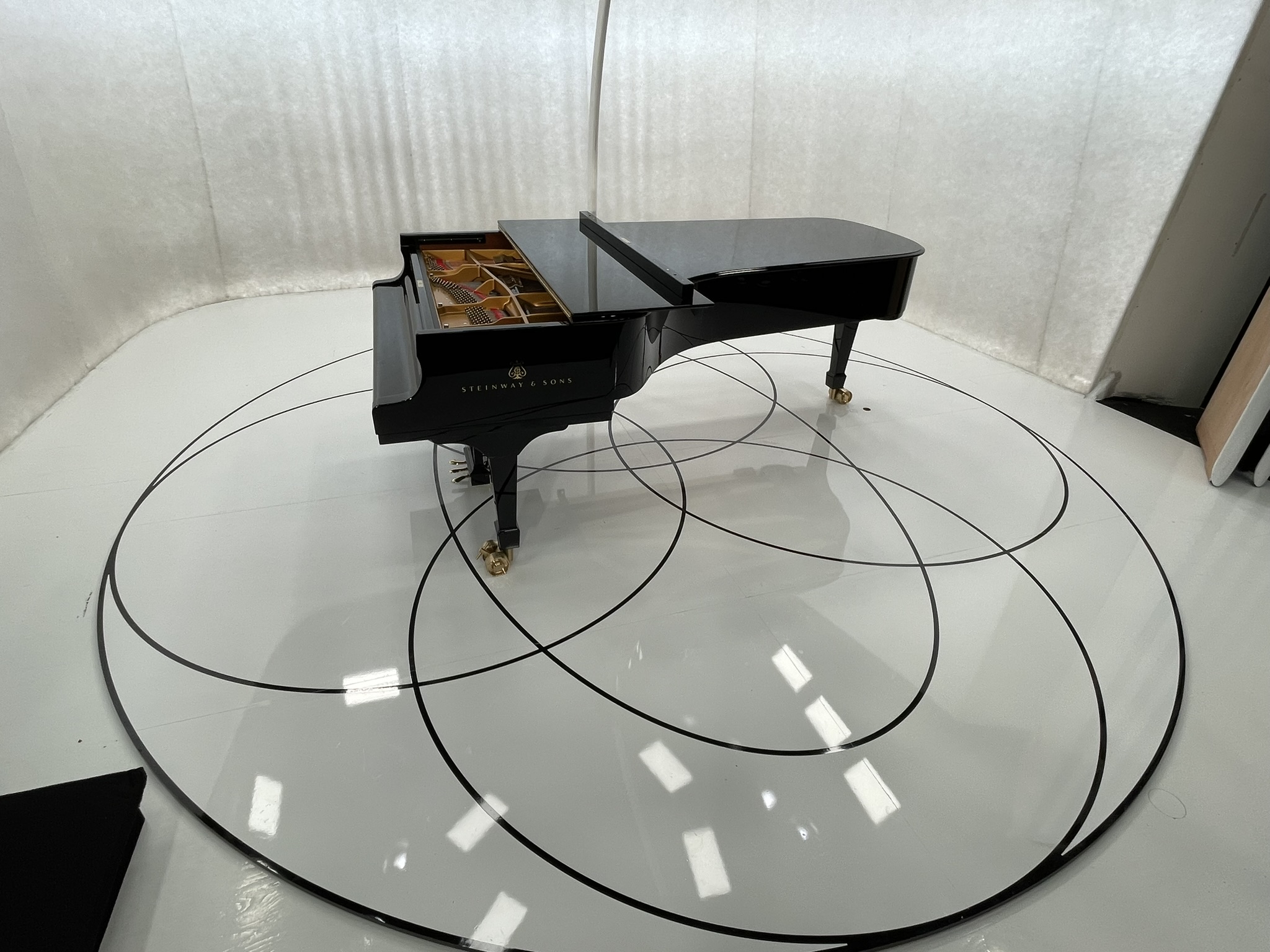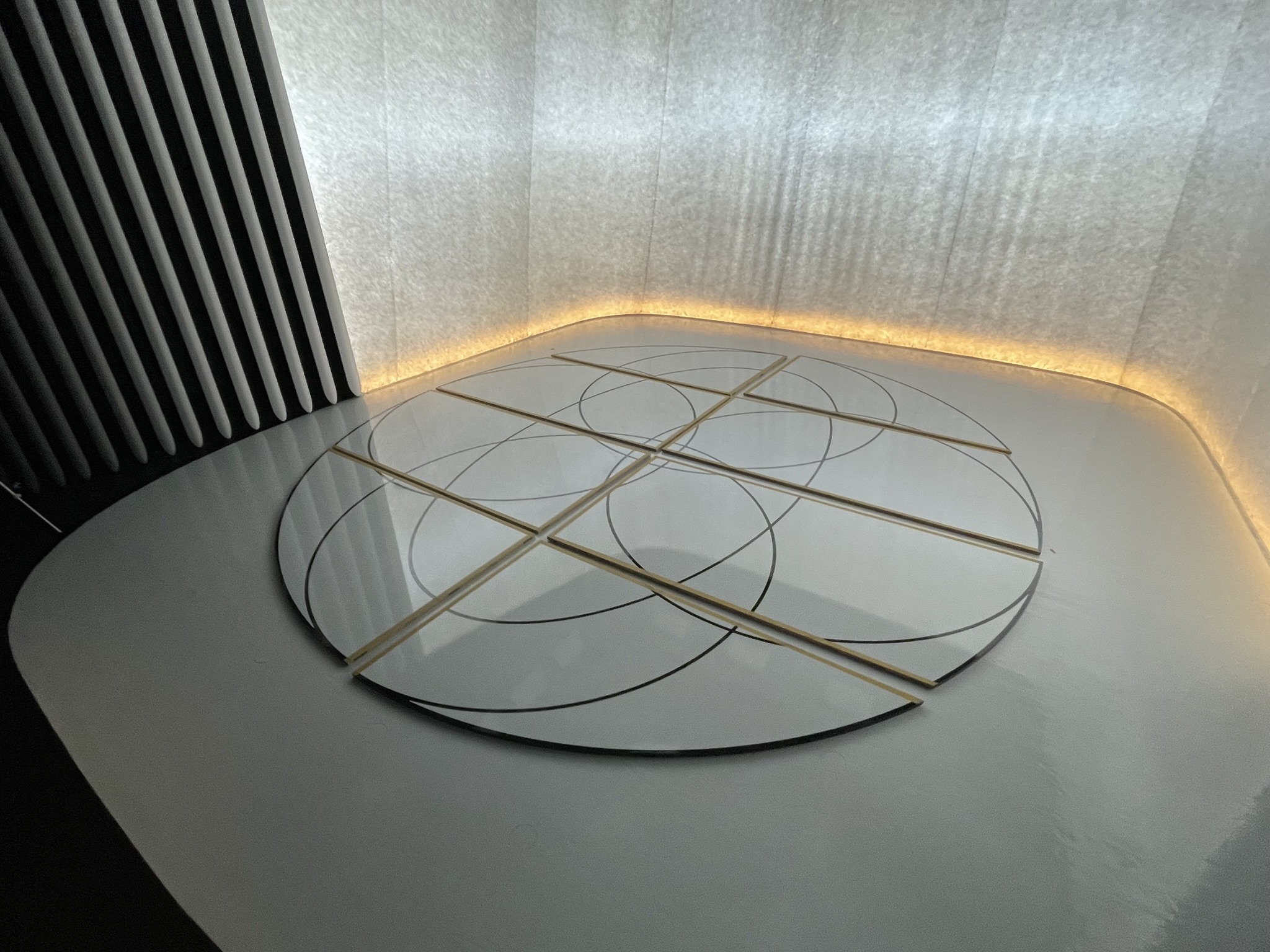 Op verzoek van 250K hebben wij het door hen ontworpen gedetailleerde, ronde en glanzende podium vertaald naar een fysieke uitvoering met een diameter van 4,5 meter. Het podium werd volledig in onze werkplaats gerealiseerd, vervolgens op locatie geïnstalleerd en na de filmopnames weer zorgvuldig gedemonteerd. De uitdaging bij dit project was om het podium zo laag mogelijk te houden, terwijl het moest voldoen aan de strenge akoestische eisen van de geluidstechnici. Om dit te bereiken is de onderzijde voorzien van een speciale demplaag, die ongewenste trillingen en resonantie voorkomt. De hoogglans platen zijn nauwkeurig ingefreesd en ingelegd met hoogglans HPL, wat zorgde voor een strak, verfijnd en professioneel eindresultaat dat perfect aansloot bij de visuele en technische ambities van het project.